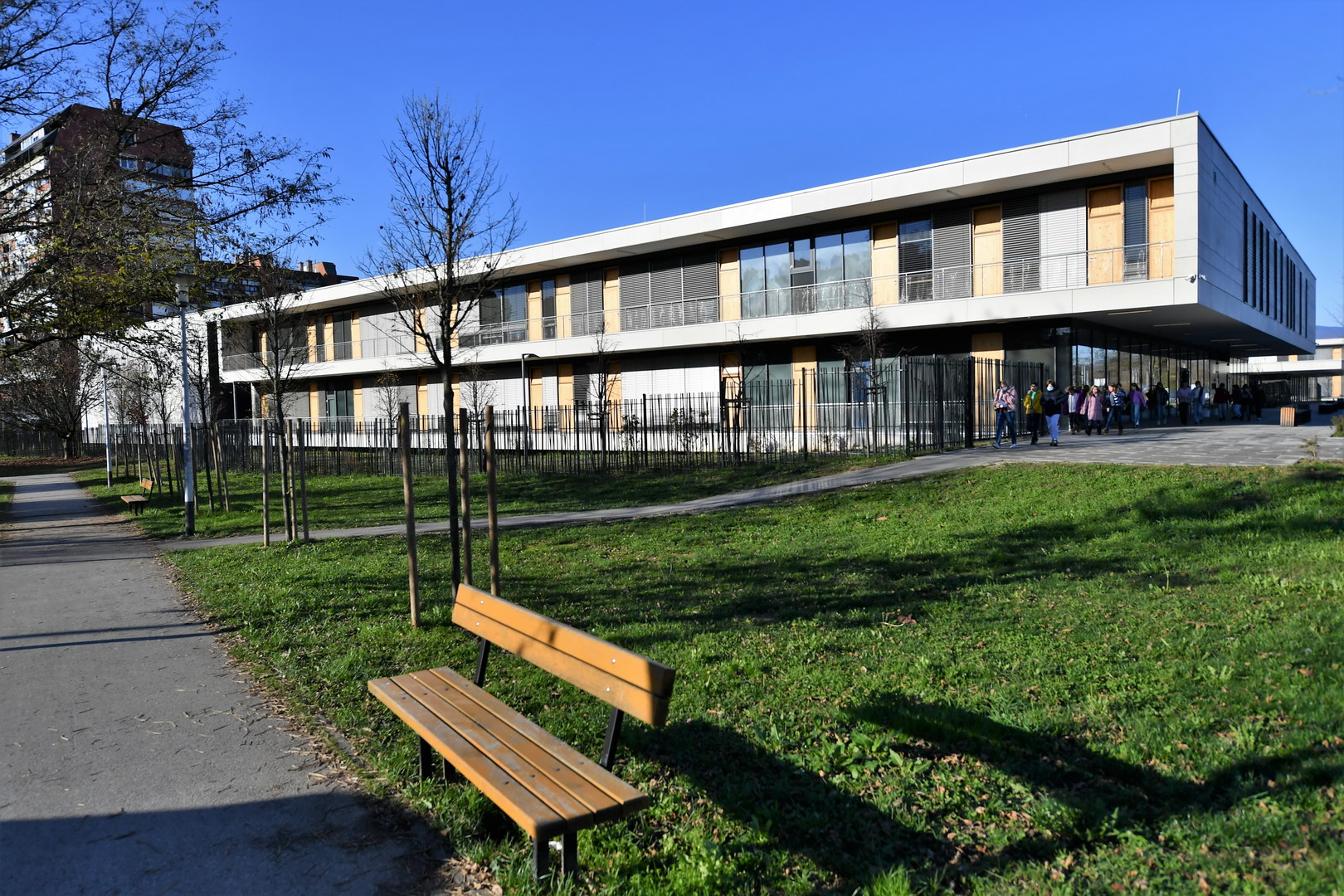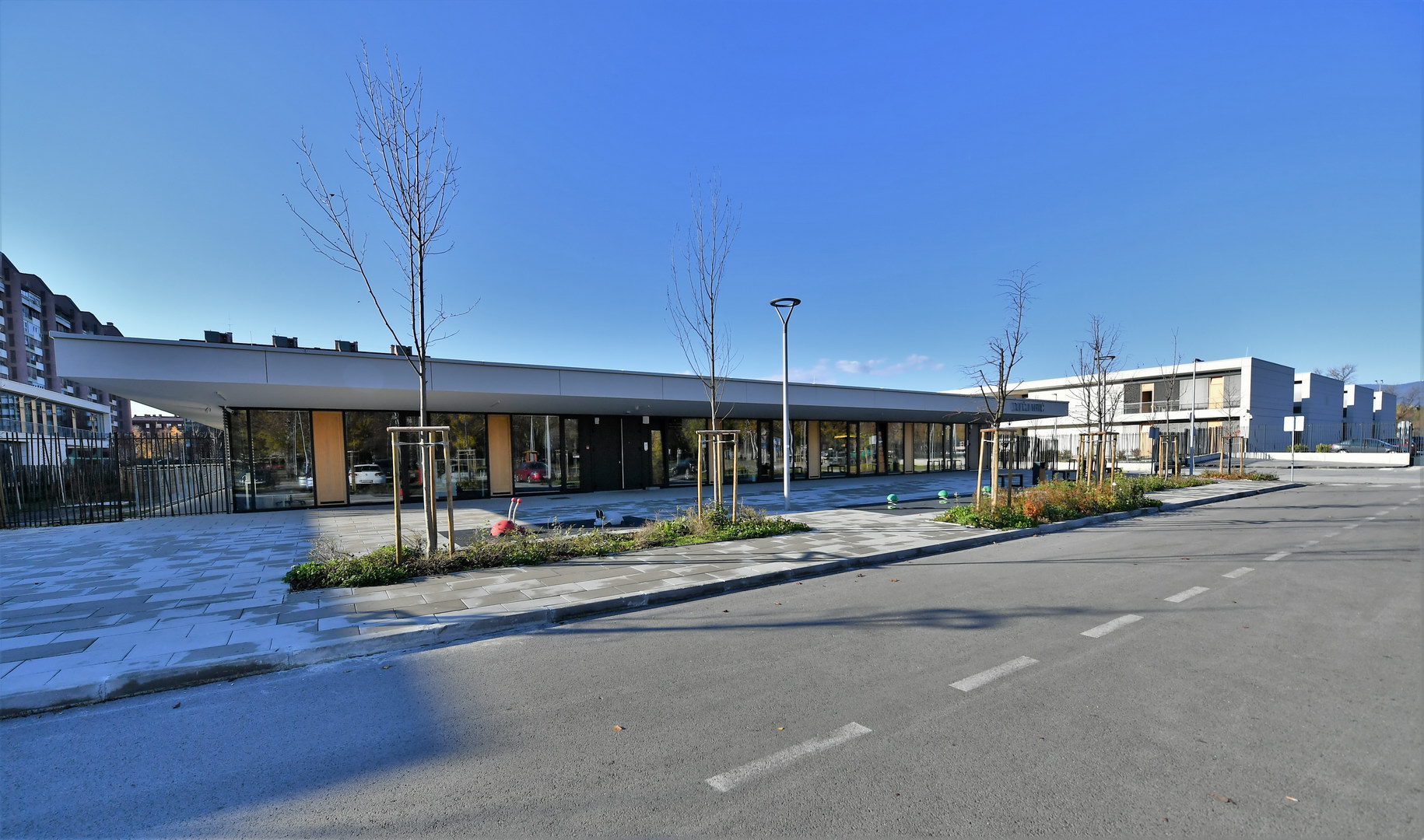 This is continuation and finish of educational area in urban, higjly populated residental neighbourhood at popular park and lake Bundek in Zagreb.