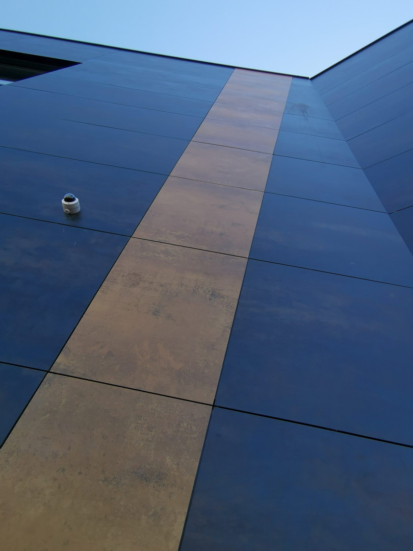 Fibercement panels Silbonit, series Hydro with structured surface Groove, colour Lavagna, are used as cladding of ventilated facade.